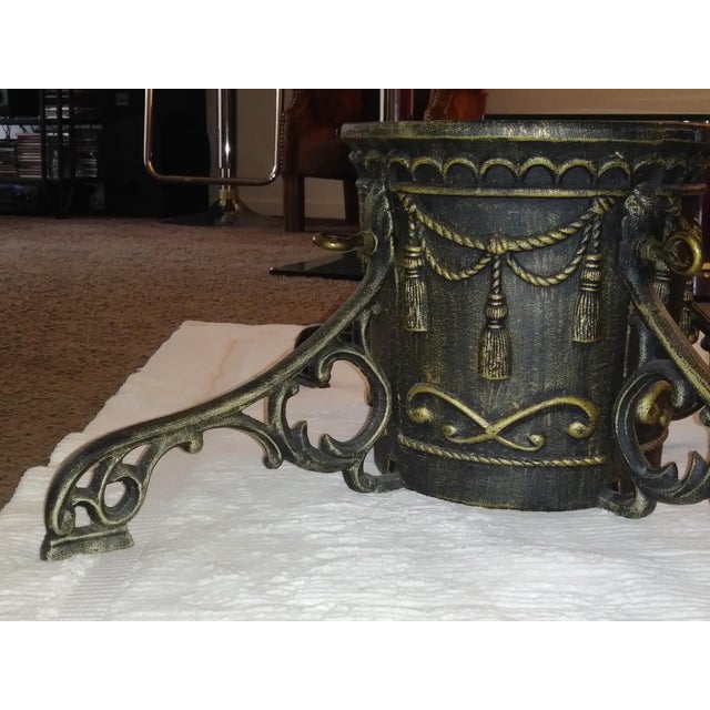 Vintage Cast Iron Gold Claw Foot Flag Pole Base Christmas Tree Stand Antique Cast Iron Christmas Tree Stand Green & Gold 3 Outlet Socket 300 UNTESTED
